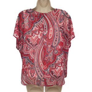 Style & Co Womens Red Chiffon Paisley Print Short Sleeve Blouse Size M