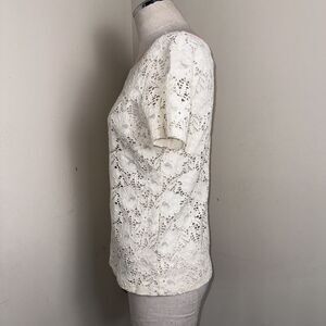 Style & Co. Womens Shirt Top Ivory Crocheted Lace Open Knit Classic Top Sz PS