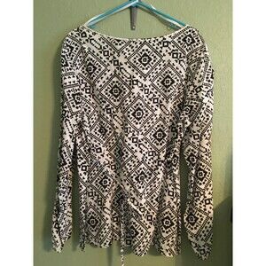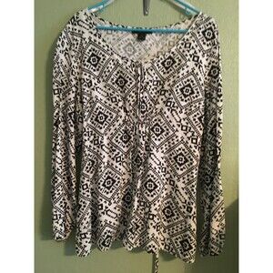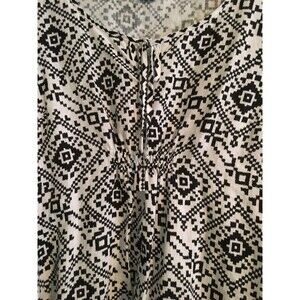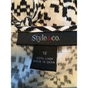 Style & Co. Women's Size 18 White and Black Linen Geometric Print Tunic