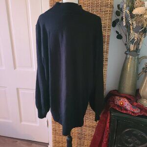 The Style & Co Women's Size 3X Black Mock Neck Sweater is a versatile and stylish addition to any wardrobe. Featuring a solid pattern with a tight-knit design, this sweater has a relaxed fit and puff sleeves for added flair. Made from 100% acrylic fabric, it is machine washable for easy care. Perfect for various occasions including casual, workwear, and even a party, this lightweight and stretchy sweater is ideal for the winter, fall, and spring seasons. The mock neck neckline adds a touch of elegance to the classic designer piece by Style & Company. It has a opening on the front of the sweater at the neckline under the mock neck. It measures 26.5" across the front at the underarms. It does stretch. Total length down the center of the back is 30".