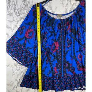 Style &Co Womens Size 3X Boho Floral dark Blue Print Blouse