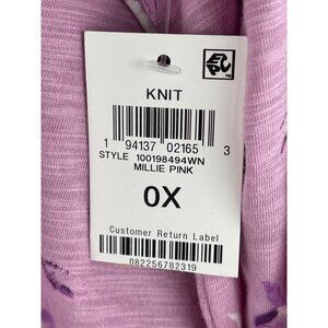 Style & Co. Womens Size OX Millie Pink Knit Top Floral V-Neck 3/4 Sleeve