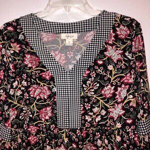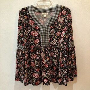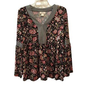 Style & Co Womens Small Black Mixed Print Floral Long Bell Sleeve Top Size S