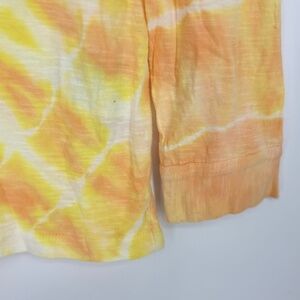 Style & Co Womens Small Cotton Long Sleeve T-Shirt Yellow Orange Tie-Dyed Print