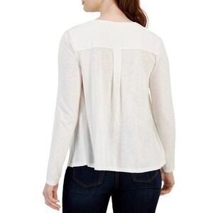 Style & Co Women's Smocked Cotton Blend Knit Top Cream Medium NWT