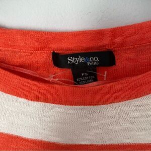 Style & Co Women’s Striped Linen Blend Short Sleeve Chinches Sides Teeshirt PS