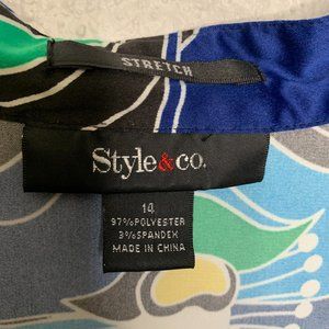 Style & Co. Women's Top Blouse Size 14 Blue Floral Design
