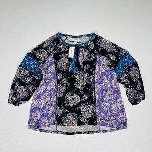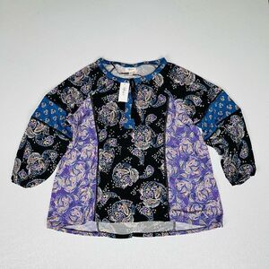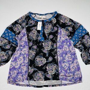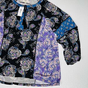 Style & Co. Womens Top Blue Plus Paisley Print Split Tie-Neck Size 3X. New with tags.
