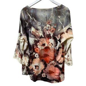 Style & Co, Womens Top Plus Size 2X Gray Red Floral 3/4 Sleeve Lace Trim