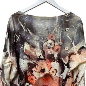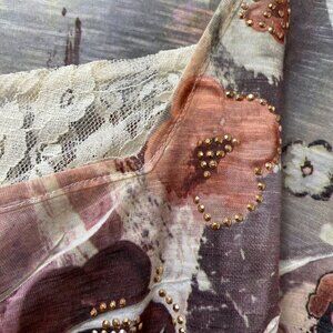 Style & Co, Womens Top Plus Size 2X Gray Red Floral 3/4 Sleeve Lace Trim