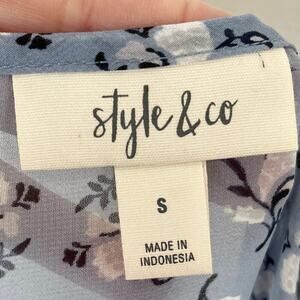 Style & Co Women's Top S Peasant Retro Scarf Print Pintuck Pleated Blue Sheer