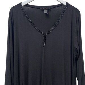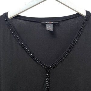 Style & Co. Womens Top Size XL Black Beaded Tunic Tee V neck Ruffle Hem