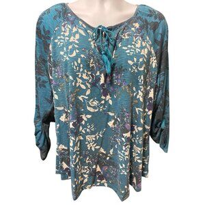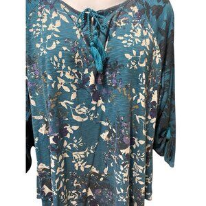 Style & Co Womens Tunic Top Size 3X Tassle Split Neck Roll Tab Long Sleeve