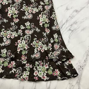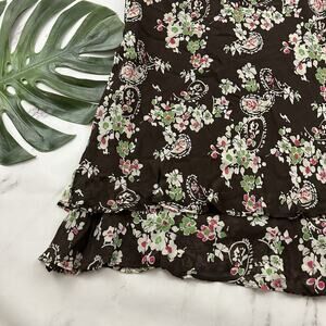 Style & Co women's vintage y2k brown and green paisley floral slip skirt, size 14 petite. It is free from any rips or stains. It measures about 32 inches around the waist and is about 33 inches long.