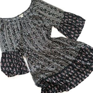 Style & Co Womens XL Black Pink Floral Off Shoulder Boho Casual Summer Dress