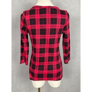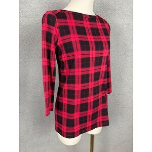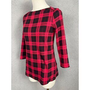 Style & Co Women's XS Red & Black Plaid 3/4 Sleeve Top 100% Pima Cotton NWOT's.