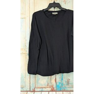 Style & Co Women's M Black T-Shirt Solid Long Sleeve Round Neck Pullover Regular