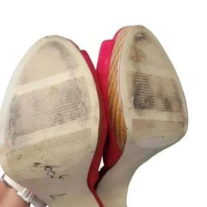 Style & Co. Women's Red Faux Suede Open Toe 3" Heel Sling Back Sandals USED sz 7