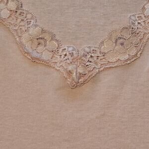 Style & Co lace-trim tank in a soft blush pink, made from 100% cotton. The delicate lace neckline and arm detail give it a vintage Y2K and coquette vibe, perfect for layering or wearing solo. A versatile piece that can go casual with jeans or flirty with skirts for that romantic soft-girl look. In excellent preowned condition.