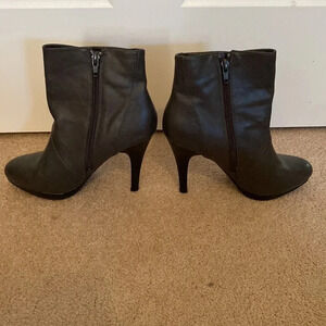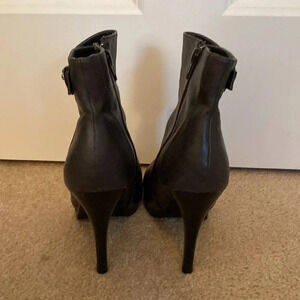 These are dark gray size 6 heeled ankle boots. They are made by style and Company in Macy's. They have a black heels.