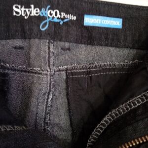 Style & Co black wide leg trouser jeans with tummy control size 12 petite