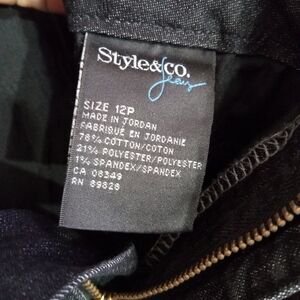 Style & Co black wide leg trouser jeans with tummy control. Excellent pre-owned condition with no flaws noted. Women's size 12 petite.