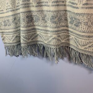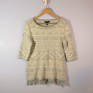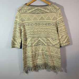 Style & Co blue white Aztec fringe 3/4 sleeve sweater NWT Size medium cotton