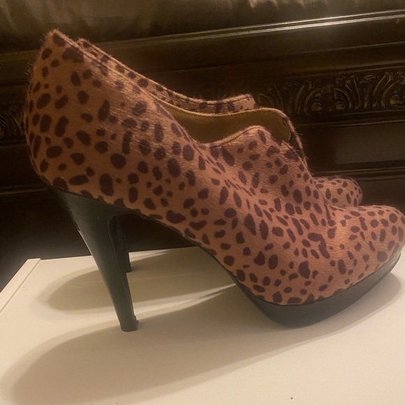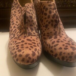Like new leopard booties. Faux fur with patent leather platform and heel. Cute and comfortable!