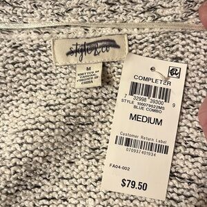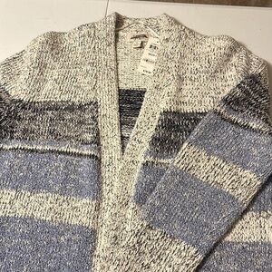 Style & Co cardigan sweater with horizontal colors of grays and blue. Very warm and cozy. Perfect for winter . New with tag, medium