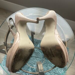 Size 9B Style and Co platform heels tan patent leather heels.