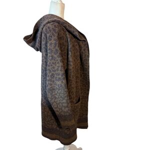 Style & Co hooded brown tonal Animal Print open front duster long cardigan sz L