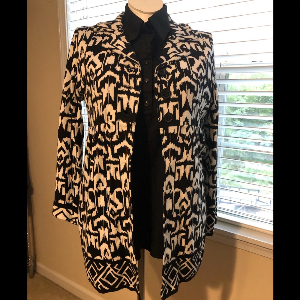 Black and white print jacket. Comfortable cotton material. Perfect condition. Does not include black shirt