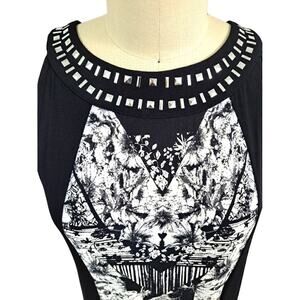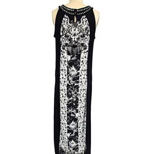 Style & Co Long black and white dress with silver detailing around the neckline. It is a stretch style and super beach/lounge /cruise-worthy...