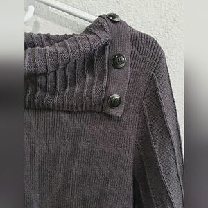 Style & Co long grey sweater with over sized buttoned collar and front pockets, size XL
