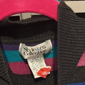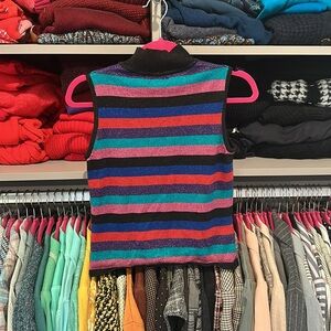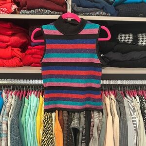 Style & Co multicolored shimmery striped mock neck sleeveless knit top size P
