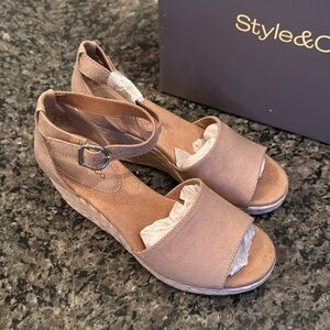 Style & Co seleeney light taupe espadrilles wedge open toe sandals NIB 9.5W