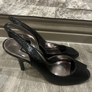 Style & Co size 9 1/2 black dressy sling back peep toe heels