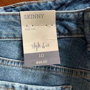 Brand new Style & Co high rise skinny distressed jeans. Never worn. New with tags. Epiphany Wash. Stretch.