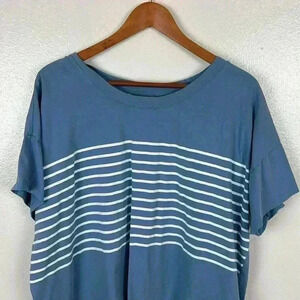 Style & Co top size 3x. Round neck, blue with white stripes on front. Short sleeve.