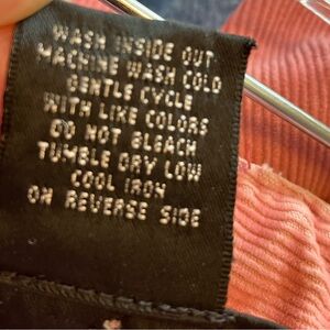 Style & Co. vintage 90’s pink cotton corduroy soft fabric boot cut midrise pants/jeans! Women’s size 8 and true to size! Preworn in great condition, no staining, zipper works very well, metal silver button and 5 pockets. Nonsmoking home. Belt loops also nice! Very rare pants and color, and I couldn’t find any others on the internet! Wish I still fit them! Bought at Macy’s back then and I’ve been the only owner. Waist measures 16” laying flat, inseam 30”, rise 10”. Just a little wrinkled from being folded—will come out after washing and drying! Great for any time of year—especially Springtime!