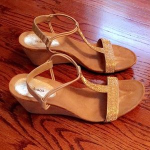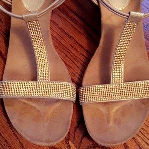 Embellished wedge sandals in beautiful rose gold. Perfect for a night out, really comfortable. Only worn once, looks brand new!