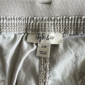plus size 22W Cropped cargo pants by Style & Co. Stone color. Features multiple pockets for convenience. Comfortable waistband. Bungee cord at hem . Very comfy pants . EUC no stains or flaws. Plenty of wear left. Cleaned ready to wear