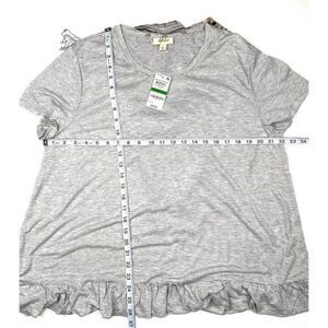 Style & Co Blouse Top Large Grey White Scarf-Neck