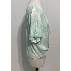 Style & Co. Gingham Tie Front Short Sleeve Button Up Linen Top Mint White Medium