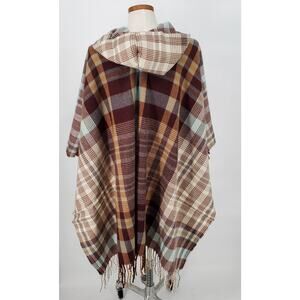 Style Collective Poncho Ruana Cape Wrap Sweater Twill Plaid Hooded One Size New