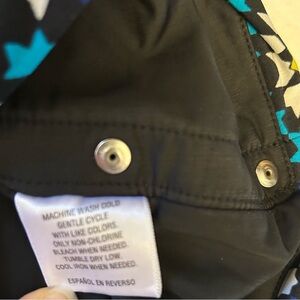 Style & Co blouse geometric pattern in blue & white, enhanced by flutter sleeves for a relaxed and airy look. Pre owned in great condition. 95%poly & 5% spandex.