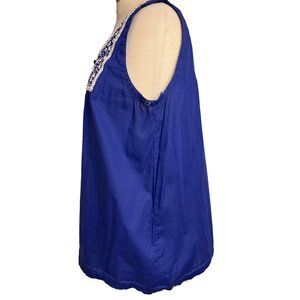 Style & Company Jeans Baby Doll Tank 12 Royal Blue Cotton Beaded Cotton