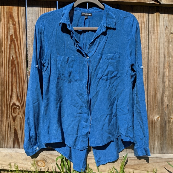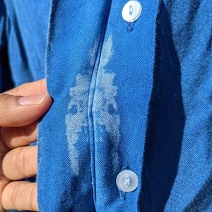 Long sleeve blouse, button-up Denim, it has a small stain.