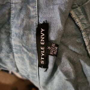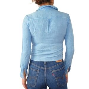 Style Envy Button Up Twist Hem Long Sleeve Blouse Small Light Blue