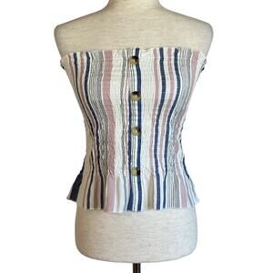Chic strapless crop top with vertical stripes. Features button-up front. Perfect for casual outings.